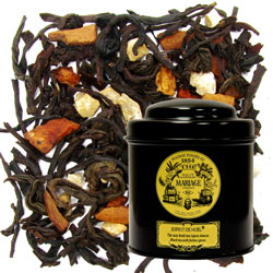 The next two teas really put the fun in tea time, and are from a company in the South (www.georgiateacompany.com). Their Snowflake tea has vanilla, almond and coconut undertones, and it’s pretty to look at with a flurry of white sprinkled throughout the black tea. I’ve only had this with a bit of sugar, but I think it’d be nice with a splash of milk, too. Their Gingerbread House tea (caffeine-free) looks a yummy treat in the bag with popcorn, cinnamon sticks, almond bits, coconut chips and more. I was sorely tempted to snack on it, ha! The cup I brewed had a caramel apple vibe with just a hint of cinnamon, but the flavor might differ a bit depending on what ingredients you get more or less of in your tea bag or ball. This one would be perfect at tea time for the younger ones; they can sip this right along with the grownups. Georgia Tea has another mix with popcorn called Carnival Blend that I’ve not tried but it sounds fun as well.One of the nice things about this company is that they sell samples, which is a big plus in my book. It’s more than a little frustrating to buy a quantity of tea that you’ve never tried and then if you don’t like it, you often end up giving it away.
